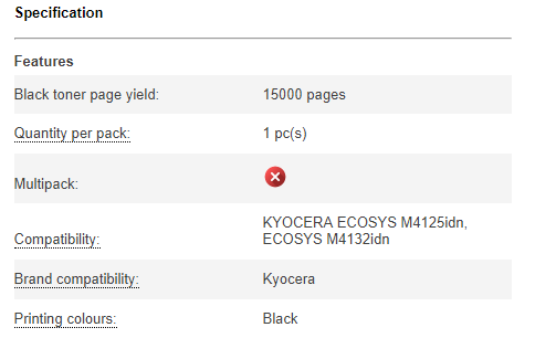For Printer Brand : Ecosys M-Serie 4125 IDN, 4132 IDN